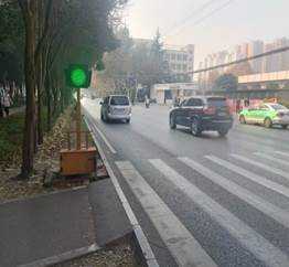 陕西能源职业技术学院咸阳校区南门外交通环境复杂,各种大型货车、客车与小型汽车流量非常大,行驶车辆超速,不礼让行人,给学校师生出行人身安全造成很大隐患。学校建设了机动车不礼让行人违法抓拍系统,增设了便携式红绿灯,完善了道路标线及指示标识,提升交通技术协防能力,有效解决了咸阳校区南门师生出行交通安全、道路拥堵等问题,显著提升了周边交通环境。