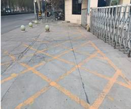 三是交通安全设施不完善。学校周边原有交通标志老旧或不明显,标线不清晰,如限速标志、人行横道标线等。