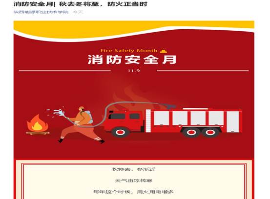 6.利用学校官微推送“消防安全月|秋去冬将至,防火正当时”内容,不断扩大活动宣传的覆盖面和影响力。