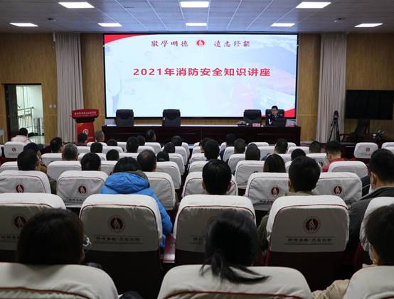 1.2021年11月8日下午,保卫处在我校咸阳校区办公楼4楼文林大讲堂举办了2021年度消防安全知识讲座。各二级学院院长、学工部部分教师、实践教学处部分实训员、公寓管理人员参加了此次讲座。培训讲座会上,咸阳市渭城消防大队雷迪副大队长从火灾分类、灭火方法步骤及逃生注意事项等方面做了系统全面讲解,起到了很好的教育效果。