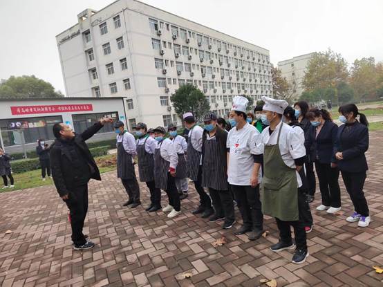 11月9日下午,消防疏散演练在临潼校区竹园餐厅开展。餐厅通报火情后,全体人员迅速行动,在保卫处职员指引下,按照疏散线路有序撤离至餐厅门前集合。