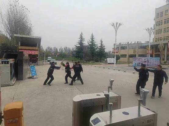 派出所干警首先为安保队员详细讲解了防暴盾牌、防暴钢叉的使用方法,并组织演练单人进攻与防范、多人合围和盾棍叉联动等实战演习。演练中模拟一名“歹徒”持凶器试图强行闯入校园,保卫处迅速向属地派出所报警,学校安保人员携带防暴盾、钢叉等防暴器材第一时间赶赴现场,分别从不同区域向暴徒靠拢,并迅速将其制服。待派出所干警到校后将其移交警方,彻底解除“歹徒”对校内师生人身及财产安全的威胁。演练过程中,安保人员分工明确,行动迅速,配合默契,处置得当,达到了预期效果。