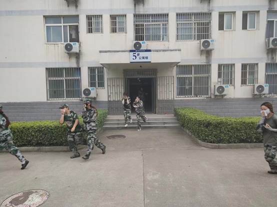 疏散演练开始前,保卫处副处长周文昱对所有参与演练人员进行了演练前的安全教育工作,并告知疏散演练程序。演练开始后,消防警报响起,所有公寓楼通报火情,全体师生按照消防演练预案迅速行动,在各楼层军训教官、辅导员指引下,各班学生按照疏散线路有序撤离至学校操场集合。所有学生在逃离过程中,要求用湿毛巾捂住口鼻,弯腰迅速从公寓内撤离。学生全部集合后,辅导员清点人数,检查是否有滞留人员。