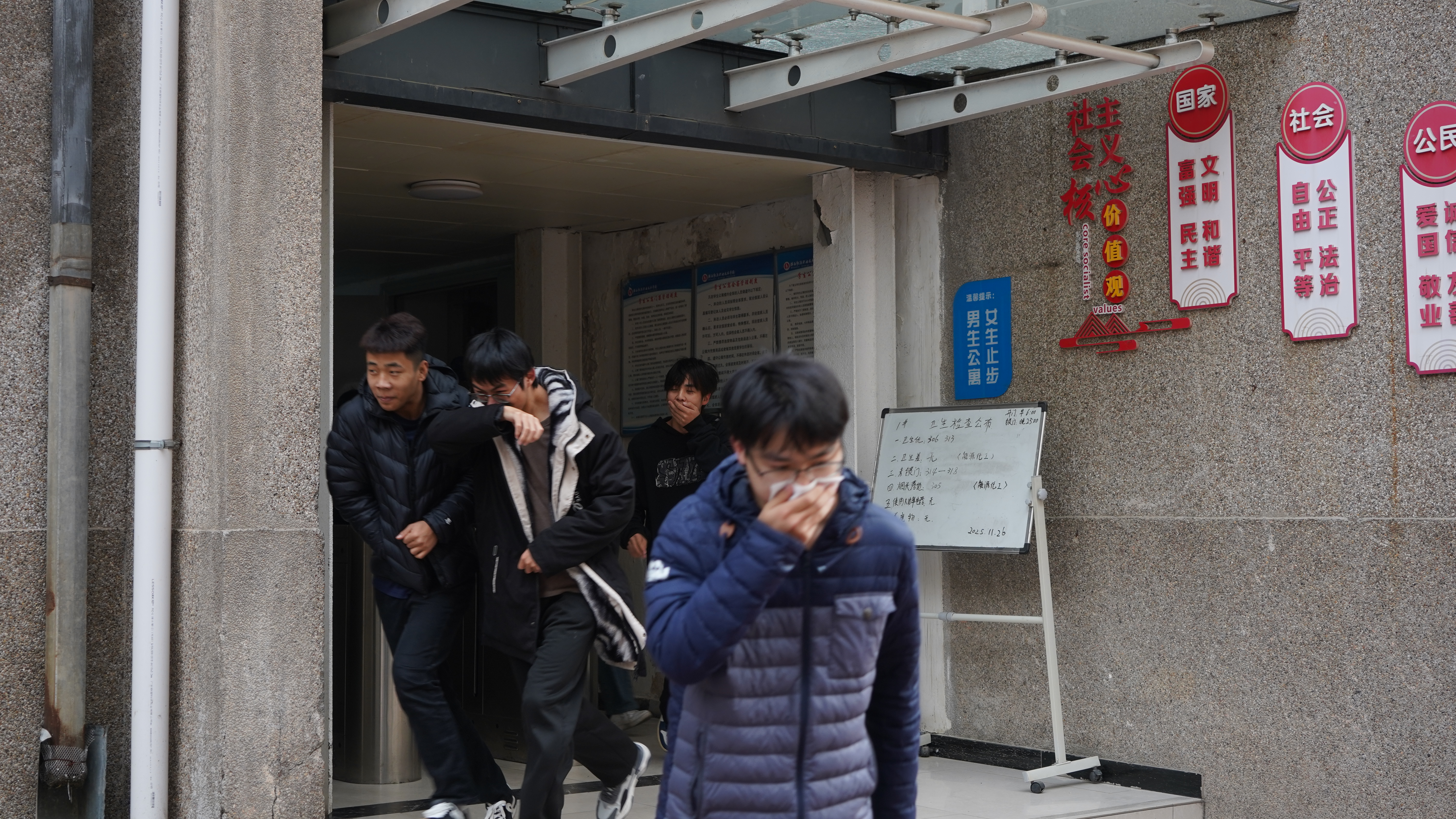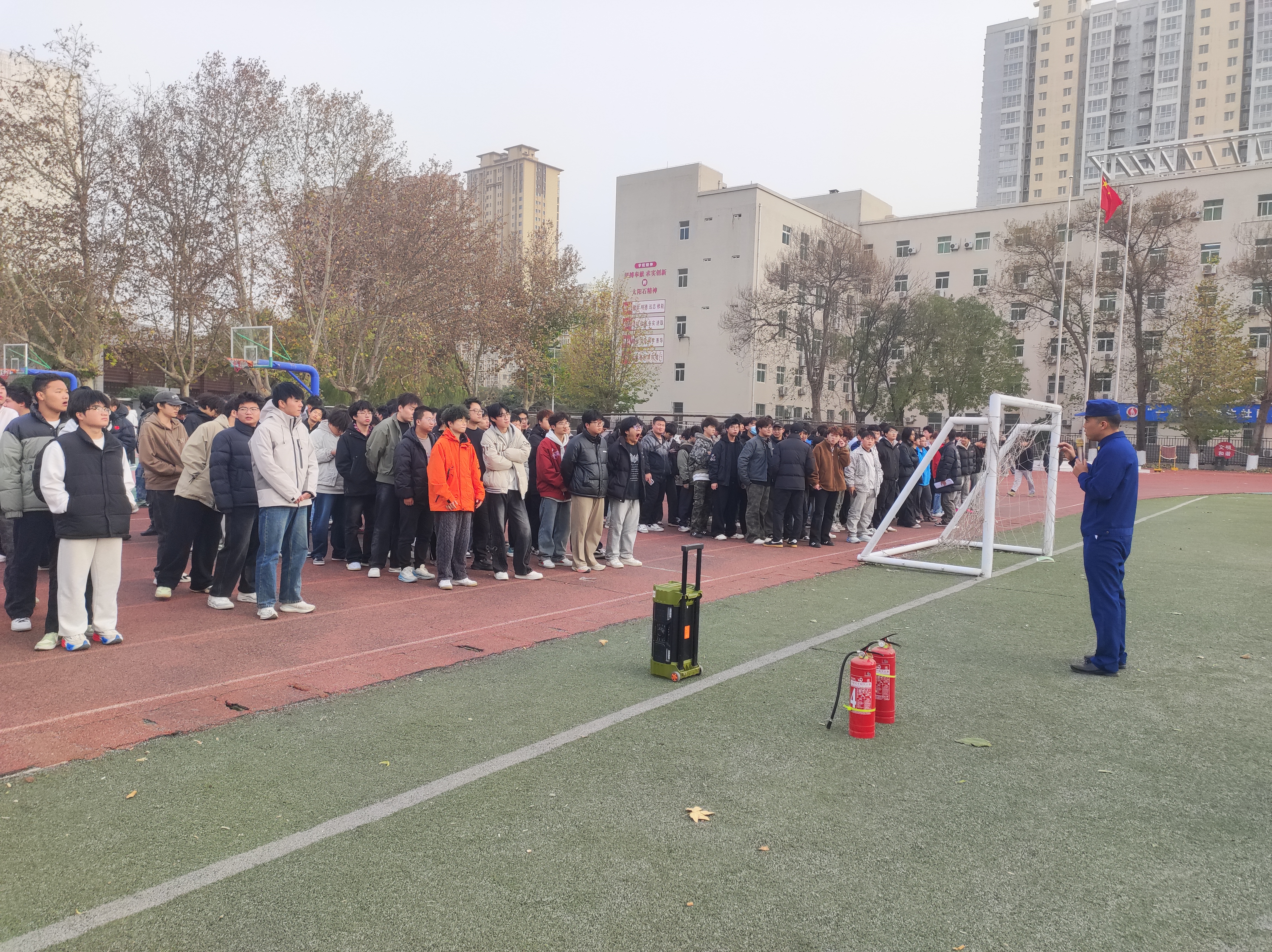 为深入贯彻落实“全民消防、生命至上”的消防安全理念,进一步提升师生员工的应急避险与自救互救能力,11月26日下午,我校组织咸阳校区6栋公寓楼、8个二级学院师生,开展了全链条、多场景消防疏散演练。