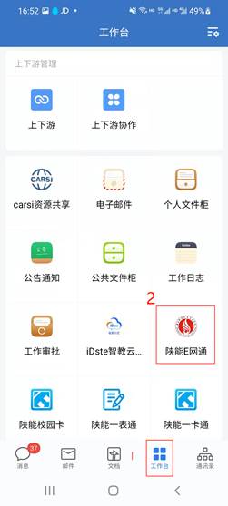 1.手机端从企业微信进入,我的工作台-陕能E网通办—办事