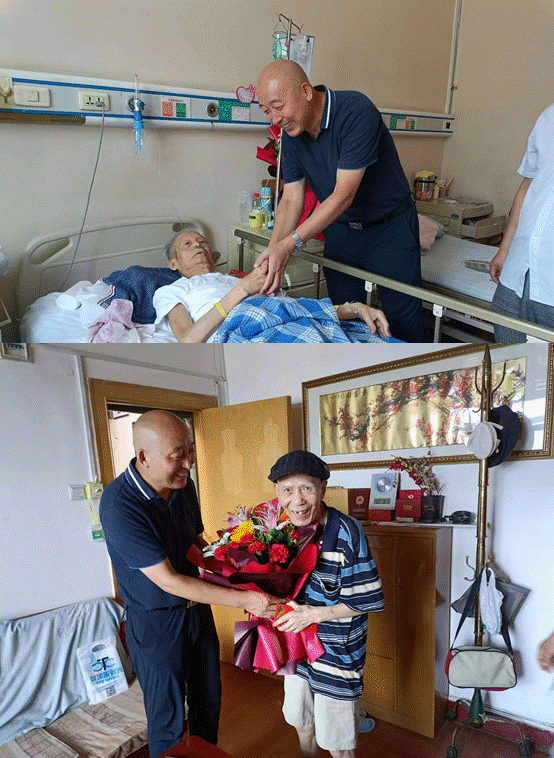 8月1日上午,校党委副书记任向明代表学校党委对我校抗美援朝老红军、老战士庞征弘、王德谦、陆允俦进行慰问,向他们致以节日的问候和诚挚的祝愿。