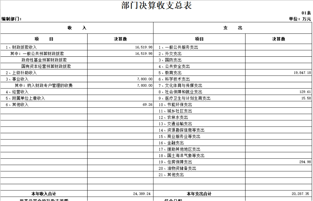 2017年实际总收入24,389.24万元,比上年增加1383.24万元,主要原因是较上年增加了养老保险金和职业年金个人补贴。2017年实际总支出20,287.35万元,比上年增加1326.35万元,主要原因是较上年增加养老金及职业年金缴费支出,含过渡期27个月个人缴费财政补助部分。