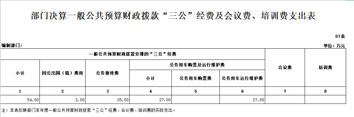 表7 部门决算一般公共决预算财政拨款“三公”经费及会议费、培训费支出表