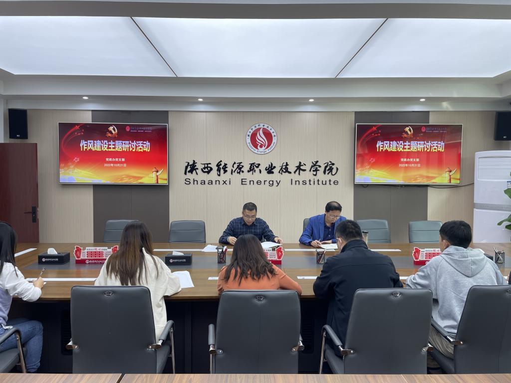 2022年10月21日,党政办党支部在办公楼第二会议室开展作风建设主题研讨活动,会议由党支部书记宋磊同志主持。