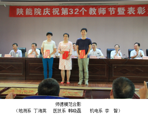 在学院9月7日召开的庆祝第32个教师节暨表彰大会上,有三位获得学院“师德模范”称号的教师受到表彰。今年是学院第一次开展“师德模范”评选活动,这三位教师也是首批荣获学院“师德模范”称号的教师。此项活动的开展,将对学院的师德建设起到引导和推动作用。