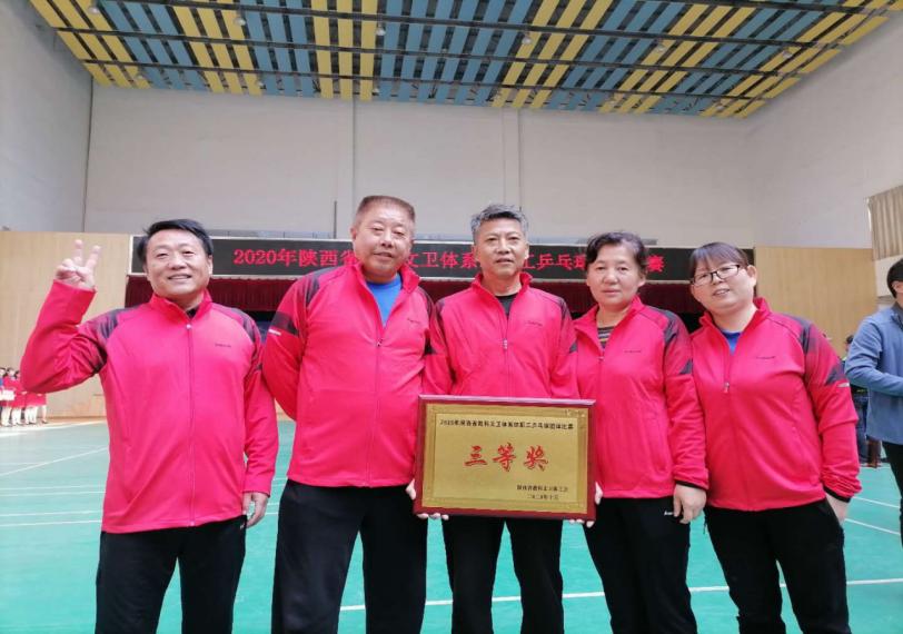 10月 22 日至 23 日,在陕西省教科文卫体工会主办、陕西铁路工程职业技术学院承办的2020年陕西省教科文卫体系统职工乒乓球团体比赛中,我校职工乒乓球代表队取得第五名的好成绩,荣获团体三等奖。