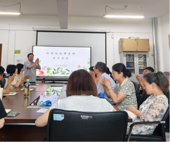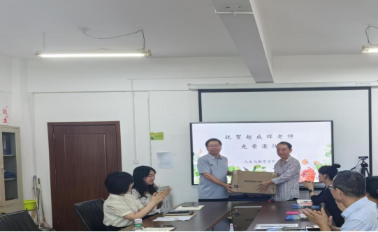 8月31日上午,人文与教育学院工会在办公楼508为数学教研室荣退教师赵成辉老师举行了退休欢送仪式,同时为第三季度过生日的教职工发放了生日蛋糕卡,以实际行动传递了对老教师的崇高敬意与对广大教职工的深切关怀。