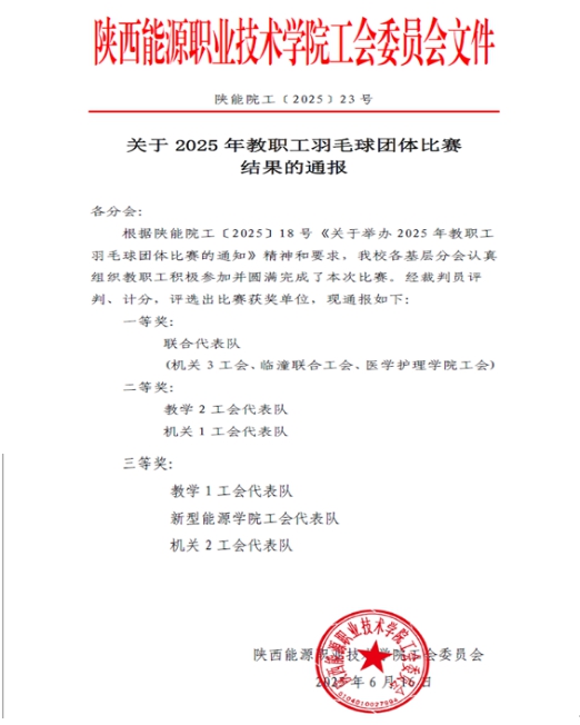 经过多轮精彩对决,比赛结果最终揭晓。联合代表队获一等奖;教学2工会代表队、机关1工会代表队获二等奖;教学1工会代表队、新型能源学院工会代表队、机关2工会代表队获三等奖。