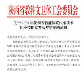 省教科文卫体工会举办的2025年陕西省智能网联汽车技术职业技能竞赛7月4日-6日在陕西职业技术学院白鹿原校区举行。