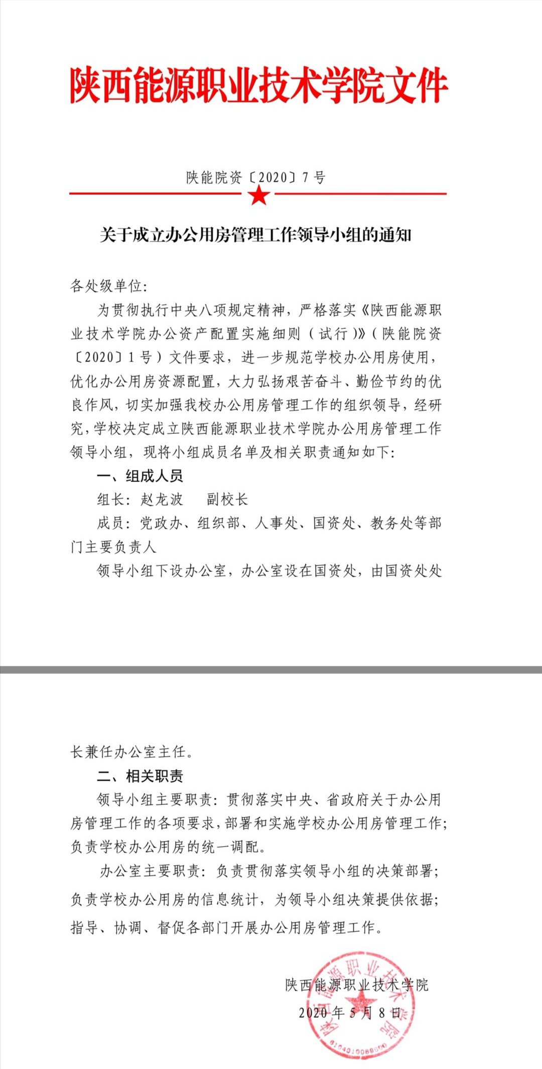 陕能院资〔2020〕7号关于成立办公用房管理工作领导小组的通知