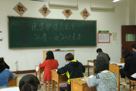 6月2日下午,医学护理系在护理1506班教室举行了“两学一做”知识答题活动。自“两学一做”活动开展以来,我系高度重视,安排部署了“两学一做”具体活动方案,此次知识竞赛是其中一项重要环节和内容。答题现场,党员同志们认真思索答题,经过比赛大家对党的知识掌握更加牢固,极大的促进了“两学一做”活动的深入开展。