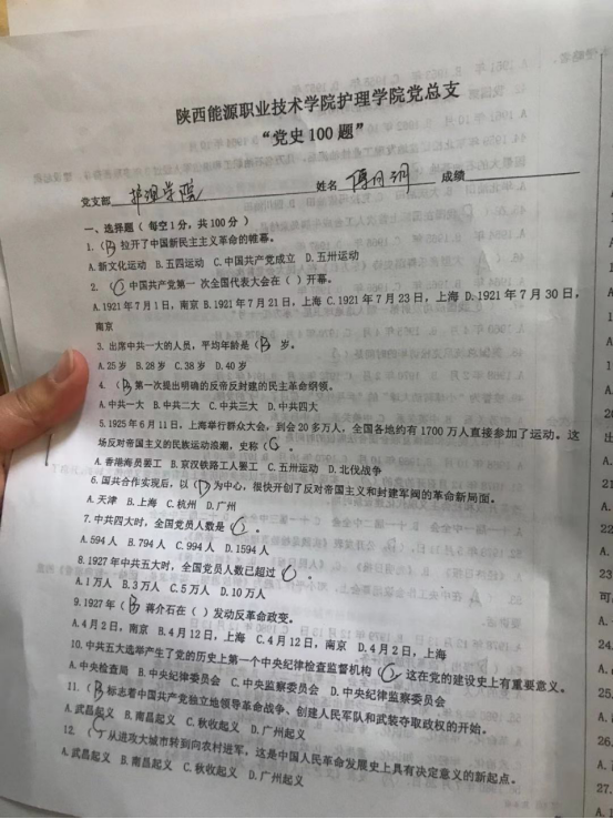 随后,全体党员教师参与党史100题答题活动。本次答题采用100道选择题闭卷的形式对《中国共产党章程》、党史、国情的知识进行了检测,党员教师高度重视,认真作答。经过此次答题活动,全体党员教师进一步掌握了中国共产党的基本理论知识,了解到中华民族不屈不挠的奋斗史,学习了国情国策,激发了爱国意识,激励大家在教育工作岗位上践初心、担使命,育好苗!