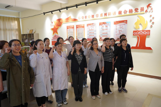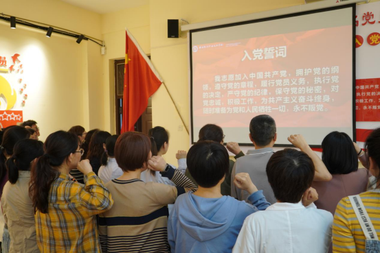 接下来由王瑜同志领誓,带领支部全体党员在党旗下重温入党誓词,回忆入党过程,接受灵魂洗礼,感受信念升华。