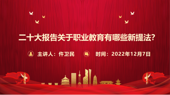 仵卫民通过对党的二十大报告中关于“实施科教兴国战略,强化现代化建设人才支撑”论述的认真研读及学习,梳理总结了数位职业教育领域的专家对党的二十大报告中关于发展职业教育、培养高技能的新提法。如职业教育发展中三教(职业教育、高等教育、继续教育)的协同和三融(职普融合、产教融合、科教融汇)的系统化观念,对于职业教育职普融通、产教融合、科教融汇、优化职业教育的类型定位以及加强大国建设与现代化发展的融合之举等。最后,仵卫民对全体党员教师提出希望,要求党员教师在职业教育发展的大平台上充分发挥党员先锋模范带头作用,为职业教育的发展注入更坚、更强的活力。