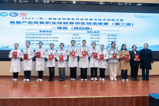 11月22日至23日,2024一带一路暨金砖国家技能发展与技术创新大赛首届产后恢复职业技能赛项区域选拔赛(第二场)在达州职业技术学院举行。来自全国11个省(自治区,直辖市和新疆生产建设兵团)的25所院校共108名选手参赛。经过两天激烈角逐,我校护理学院教师申婧、刘丽、王冰、赵娇指导的梁心雨、王怡瑞、李志愿、雷丽萍、张婕琳、马林秀6名同学组成的两支参赛队均获得一等奖的好成绩。