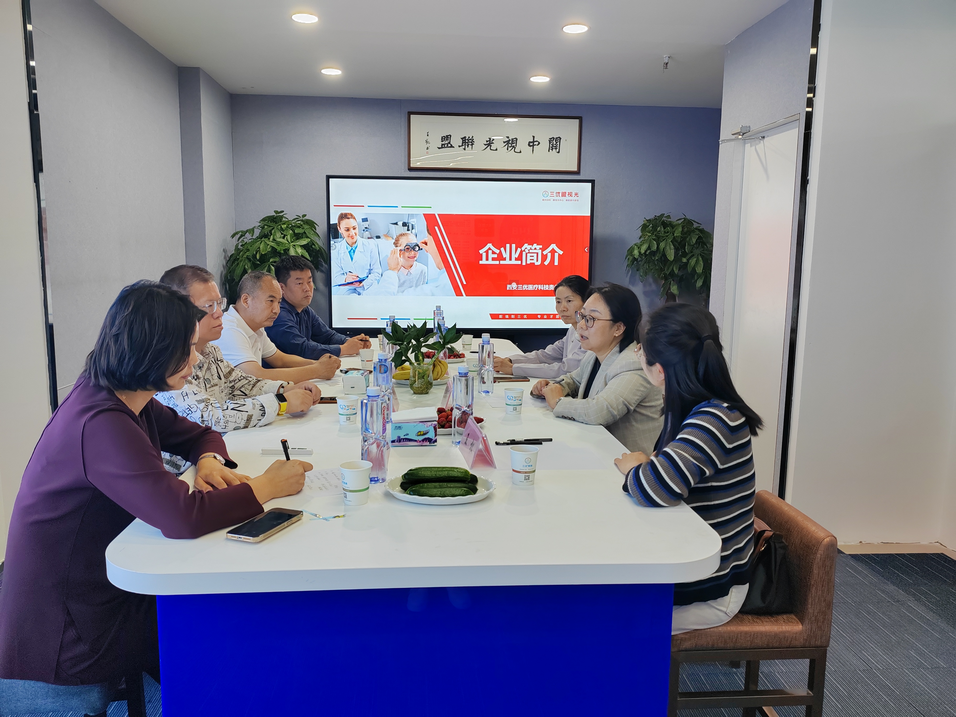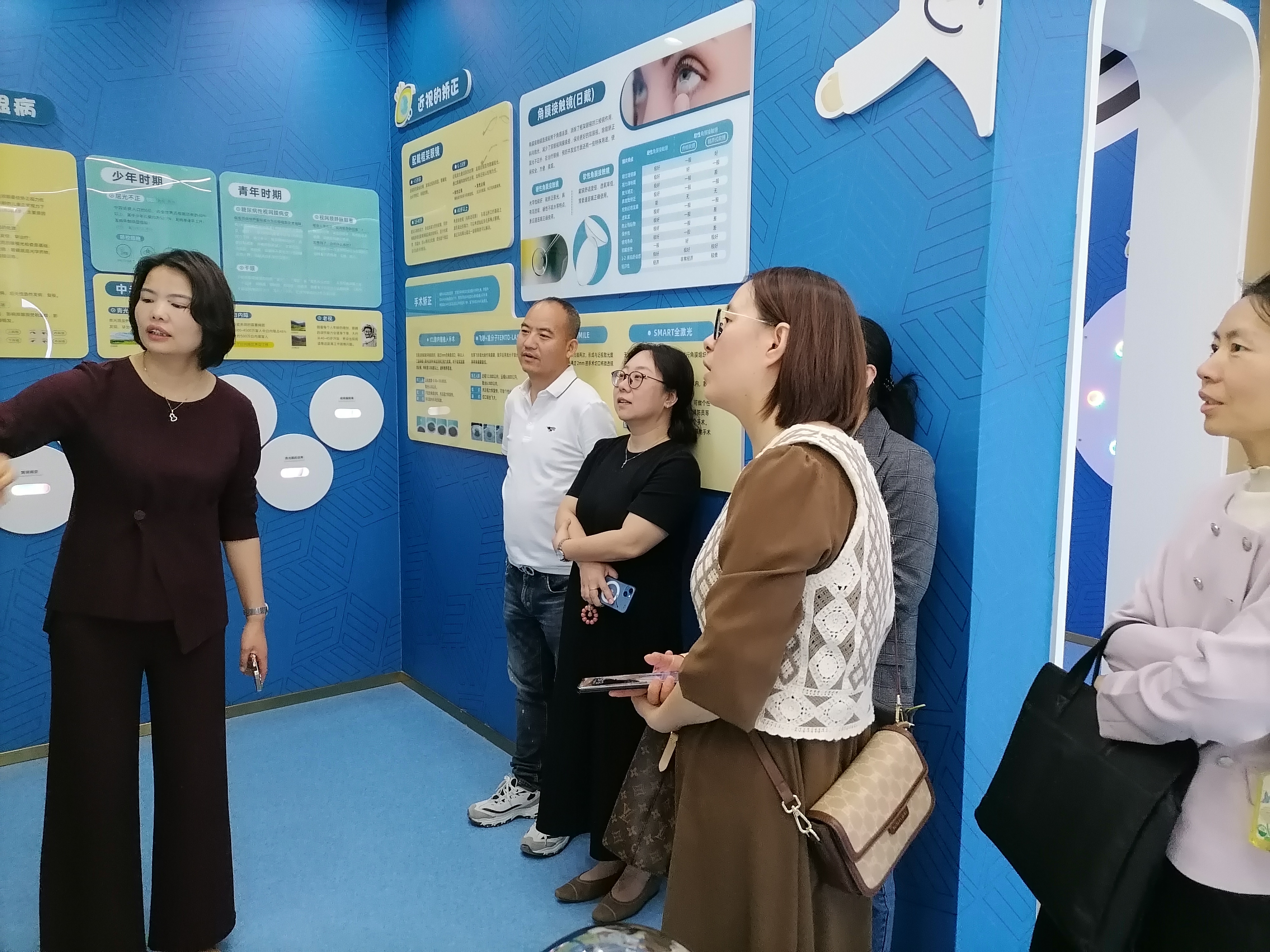 陕西三优医疗科技有限公司董事长董春定对医学护理学院一行热情接待,并依次安排到陕西三优技能培训学校、三优眼镜科普馆和三优眼科诊所视界观参观。