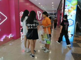 下午,调研团成员前往商场、地铁、社区、街道进行调研、发放问卷,进一步了解城市人群对三孩政策的响应程度。发放问卷的过程稍有曲折,但成员们不气馁,互相鼓劲加油,最后圆满地完成了当天的工作量。