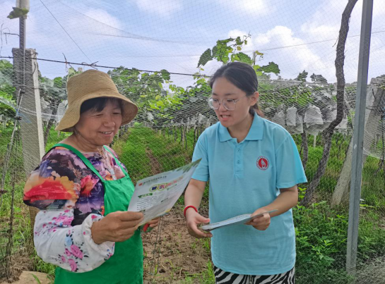 实践队成员齐怡佳为工作人员讲解夏季防暑知识