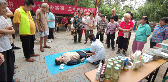7月20日,实践队联合灞桥区农检农经党支部在西安市灞桥区席王街道东张村开展“学党史办实事,卫生科普进乡村”暑期社会实践活动。实践队成员分别为当地村民进行骨折包扎法、气道异物急救--海姆立克急救术、心脏骤停急救--心肺复苏术、“冬病夏治”中医小课堂等卫生科普知识的宣讲,并与村民们进行互动,现场指导实践操作,并开展“乡村振兴”问卷调查,为村民们测量血压、共同制作中药香囊,发放卫生健康小知识宣传彩页及防疫防暑物品,