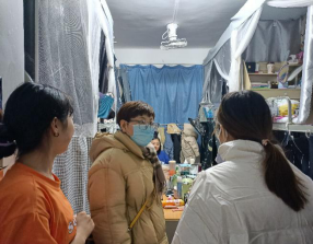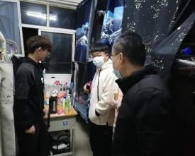 12月19日晚,护理学院党总支副书记巩明发带领学工办主任陈小红及7名辅导员深入宿舍慰问学生,询问学生生活学习情况,提示学生做好个人防疫,鼓励学生认真复习备考,促使学生理解并主动遵守学校防疫措施。