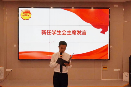 白驹过隙,时光荏苒。在新的学年里,校团委会、学生会通过层层选拔迎来了新一届团学干部,他们将代表学院团委、学生会,继续为师生和学校服务!唐世彬作为新一届学生会代表上台发言,他对团学工作的未来进行了展望并做了详细的工作计划,同时对老师和上届学生干部的栽培与指导表示衷心感谢。