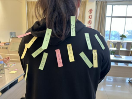 优点大轰炸活动中,大家将他人的优点写在便利贴上,以贴纸条的方式向站在圆圈中的人投出优点轰炸。每个人收获了大家的认可和赞美,发现自身原来有这么多优点,更加自信,而在赞美他人的过程中也收获了快乐。