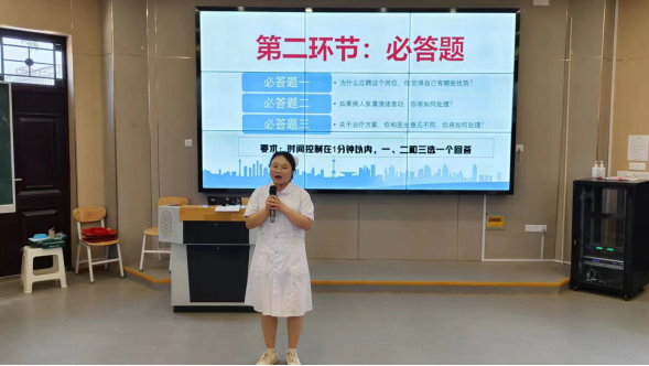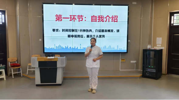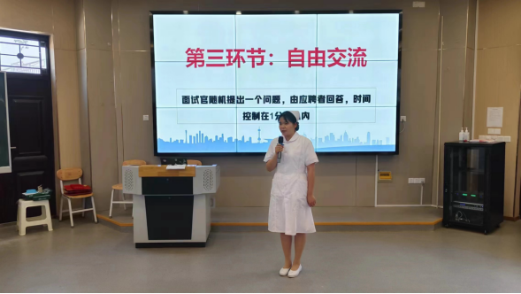 在院级决赛中,选手们通过自我介绍、必答题、自由交流三个环节进行展示,评委老师围绕专业知识、个人职业生涯规划及护士工作常见问题对参赛选手进行提问,并对各参赛选手进行了点评,给出了指导性意见和建议。模拟面试结束后,陈小红从简历制作、护士礼仪、应对技巧、临场表现等方面做出了点评,逐一指出20位同学面试表现的优缺点,对学生们在职场应具备的综合素质和能力提出了要求和期望。辅导员宋云雅也分享了自己对“如果病人家属情绪激动,你将如何处理?”这道命题的回答思路。