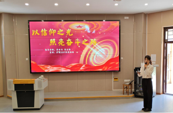 樊格格同学以饱满的热情和生动的语言,通过丰富的案例和深刻的分析,向大家讲述信仰是人类精神世界的支柱,是我们追求真理、探索未知的动力源泉,激励大家将信仰内化于心,外化于行,在每一次的选择和决策中,都坚守自己的信仰,不被外界的诱惑和干扰所动摇。在场的同学纷纷表示,今后无论面临何种困难和挑战,都会坚定信仰,勇往直前,用信仰之光,照亮前行的道路。
