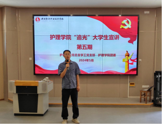 为持续开展团员青年思想主题教育,提高团员青年责任感和使命感,5月23日中午,护理学院“追光”宣讲团在临潼校区105报告厅成功举办了一场主题为“以信仰之光,照亮奋斗之路”的宣讲活动。全体辅导员以及130余名学生代表参加了本次活动,本期宣讲人为护理2207班樊格格。