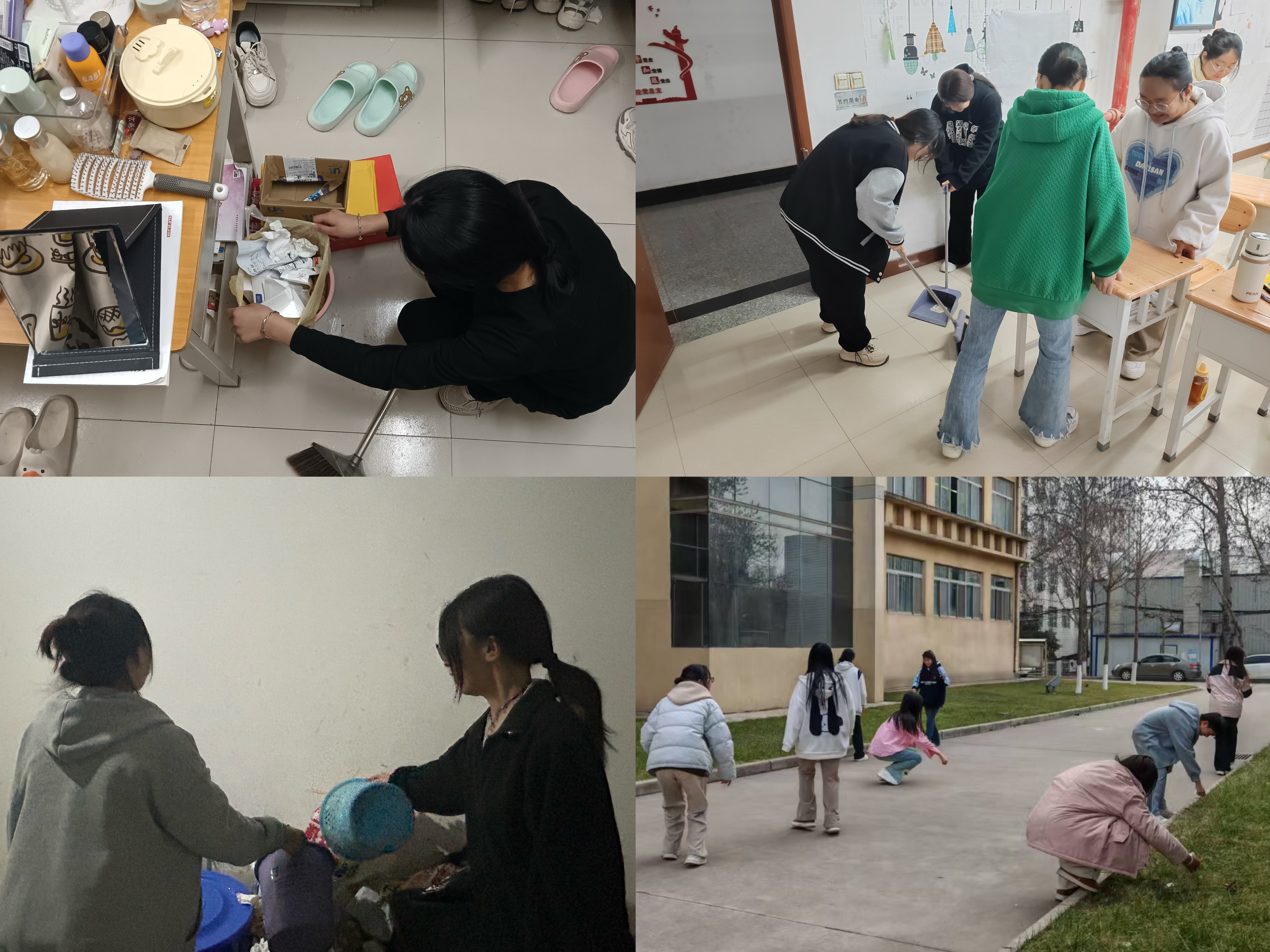 部分班级将志愿服务活动的地点选在教室和宿舍,进行了彻底的大扫除,此次志愿服务活动不仅改善了学习环境,也增强了同学们的志愿服务意识和集体责任感。从小事做起,从身边做起,将雷锋精神融入日常生活。