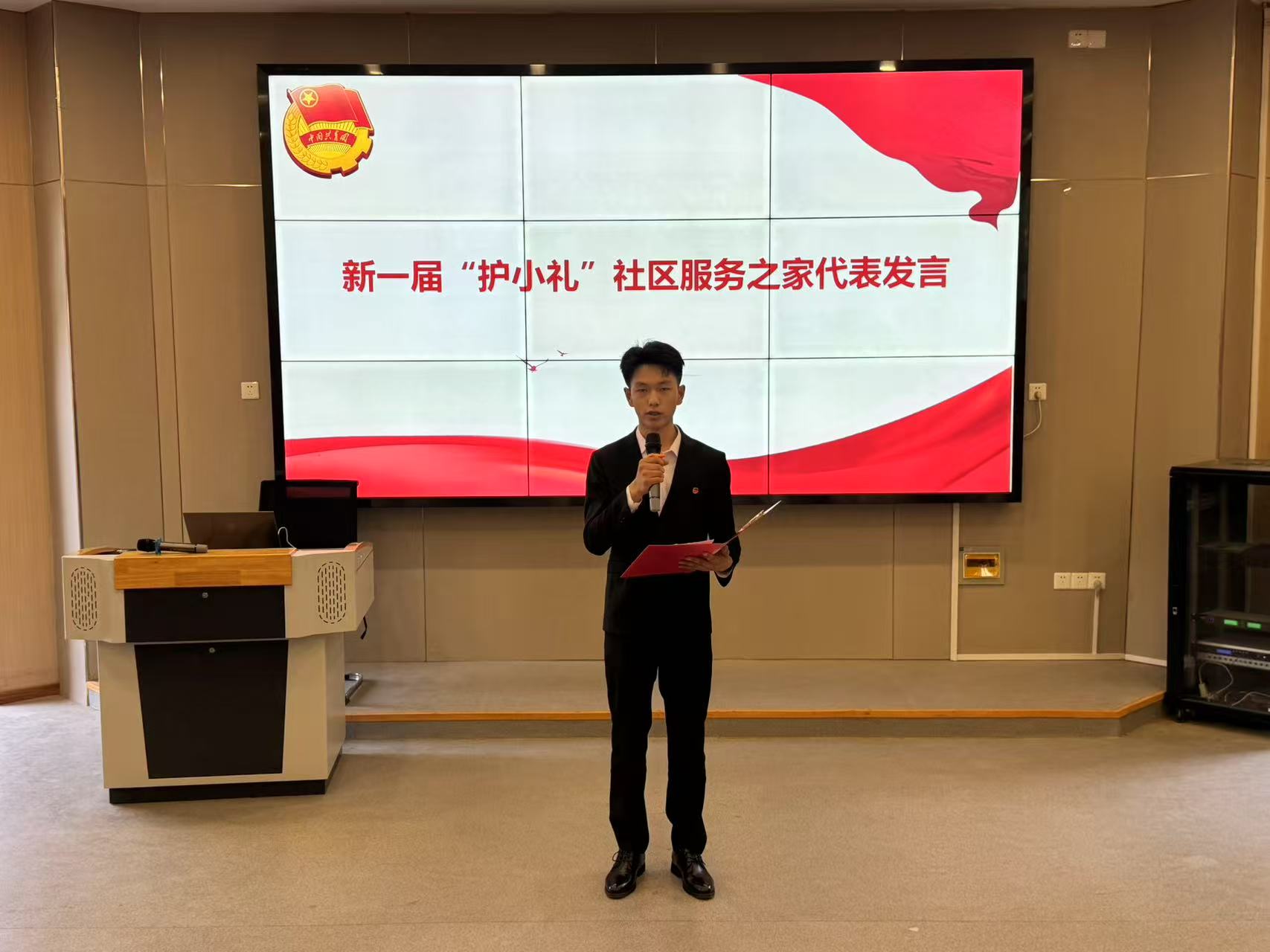 “护小礼”社区服务之家由考勤督查社、卫生安全社和温馨互助社组成,分别主抓学风纪律、公寓卫生督查、聚焦学生成长关怀。大会宣布了21名志愿者名单。让志愿者在学风建设、环境卫生、文化融合及意见反馈等方面发挥主导作用,共同营造文明和谐的学习生活环境。
