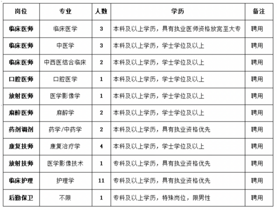 根据医院工作需要,经研究决定,面向社会公开招聘工作人员31名,现将有关事项公告如下: