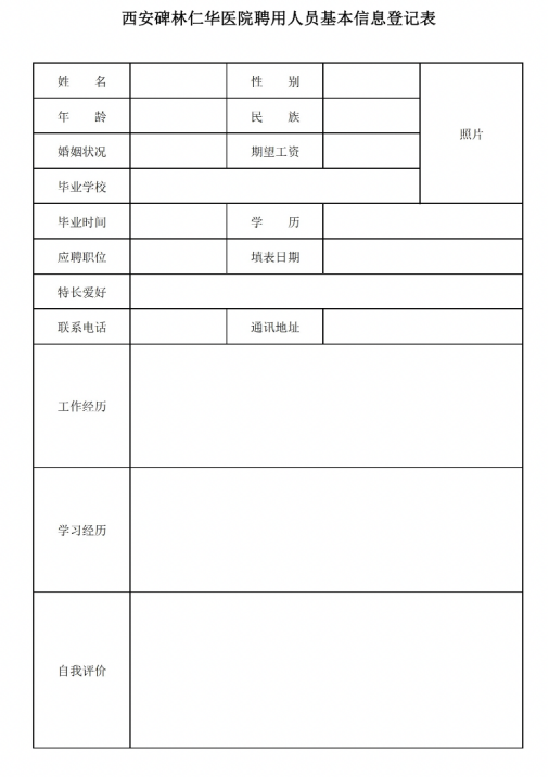 附件1:西安碑林仁华医院聘用人员基本信息登记表