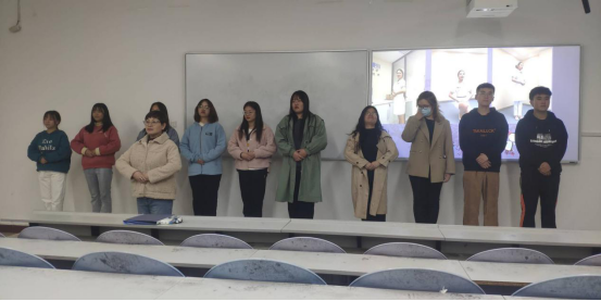 11月4日晚自习学工办主任陈小红召开“三进一促”讲座,围绕礼仪知识、护生坐姿、站姿等现场指导,并带领学生宣誓,志愿做文明礼仪的传承者。