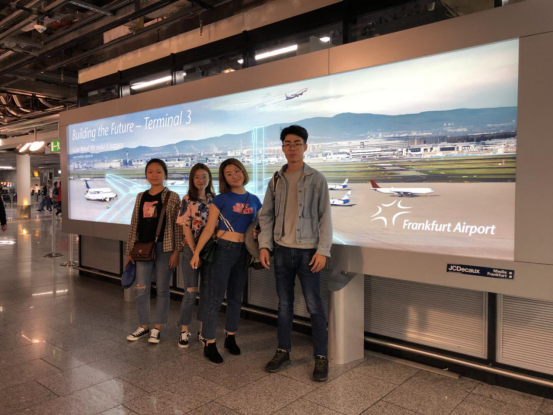 9月15日早,我校中德护理国际班四位同学刘嘉伟、孔嘉蓓 、苟瑞晨露和陈若楠与游学项目负责人奥德国际梁思思老师乘机抵达德国法兰克福。