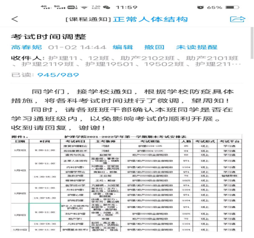 《正常人体结构》《内科护理》考试通知及考试注意事项发放