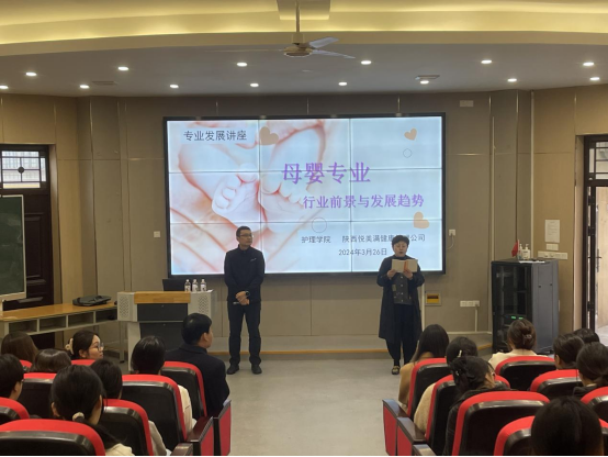 下午,陕西悦美满健康管理公司总经理王鑫以《母婴产业的行业前景与发展趋势》为主题,为我院全体教师及200余名学生代表开展了专题讲座,本次讲座分别从全国母婴行业市场、家政护理与母婴护理市场规模等方面进行了讲解,为我院人才培养的实施提供了宝贵的借鉴和启示。