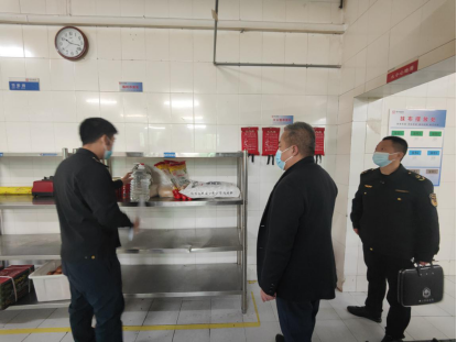 2022年2月17日上午,渭城区市场监管综合执法大队大队长董华和食药三科科长张坚,来校检查食堂春季开学准备工作。