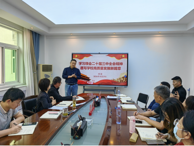 10月9日下午,学校党委委员、副校长刘浩在办公楼第一会议室为后勤党支部全体党员讲授党的二十届三中全会精神专题党课。