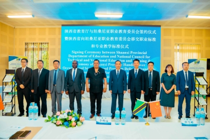 活动期间,我校代表参加陕西省教育厅与坦桑尼亚国家职业教育委员会签约仪式暨陕西省向坦桑尼亚国家职业教育委员会移交职业标准和专业教学标准仪式。陕西省委常委、省委统战部部长李明远代表陕西省将四所院校开发的煤矿开采技术人员等11个职业标准和专业教学标准移交给了阿道夫·巴比利吉·鲁塔尤佳博士。这标志着中方为坦方制定的职业标准和配套教学标准已通过坦桑尼亚职业教育委员会审核,将在坦桑尼亚进一步推广使用。同时,为未来两国教育领域的深入交流与合作奠定了坚实基础。