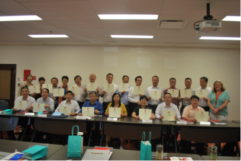 随后威尼尔学院校长、教学副校长、国际交流处负责人参加了SnyC20团结业证书颁发仪式。学校外事办主任任向明向为此次访学对接及翻译的朱晓阳老师赠送了陕能院文化展品。John McMahon先生逐一为全体团员颁发结业证书。颁发仪式后,赵新法做总结讲话指出:“感谢威尼尔学院诚挚、热烈、周到的安排,再次向所有授课外籍教师表示真诚的谢意,也同时向国际交流处的全程跟踪服务表达谢意;经过数日的听课、接触、感受并熟识畅谈,让大家耳目一新,收益匪浅;双方还存在深层次的交流合作,希望能密切交流,加强联络,争取新进展,倡导新合作,展现新模式,实现新愿景。”活动结束后,双方在友好、诚挚、热烈的氛围中合影留念。