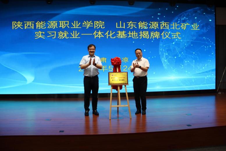 座谈会上,朱忠军与西北矿业邵寨煤业公司党委书记、董事长刘延生签订了“访企拓岗”协议,并与李新共同为实习就业一体化基地揭牌。