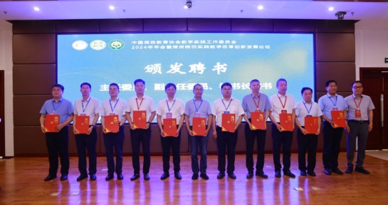 随后,王慧凌宣读了《关于增补和调整中国煤炭教育协会教学实践工作委员会组成人员的说明》,进行了审议表决。李增全、刘予东共同为中国煤炭教育协会教学实践工作委员会揭牌。李增全、王慧凌、刘予东、郑蓓分别为主任委员、副主任委员和秘书长颁发了聘书。