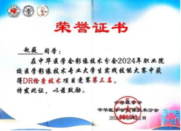 9月20日至22日,由中华医学会、中华医学会影像技术分会主办,江西医学高等专科学校、上饶市医学会医学影像技术分会承办的2024年职业院校医学影像技术专业大学生实践技能大赛暨医学影像技术专业教师教学创新大赛,在江西医学高等专科学校举行。来自全国58所院校300余名师生参加比赛,我校获单项三等奖3项,团体第三名的成绩。
