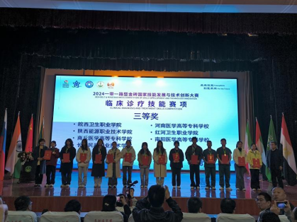 11月15日至17日,2024一带一路暨金砖国家技能发展与技术创新大赛临床诊疗技能赛项在山东省菏泽医学专科学校举行。来自全国二十个省(自治区、直辖市和新疆生产建设兵团)的45所院校共计90名参赛选手参赛。经过精心筹备与刻苦训练,我校现代康养学院临床教研室贾彤、康小宁指导的临床2201班李丹、2201班杨平辉组成的参赛队,经过不懈努力与顽强拼搏,凭借扎实的专业技能和出色的团队协作能力,以优异成绩荣获三等奖。
